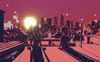I’m so happy though you still like it! No, it’s not based on a real view. I tried out a lot of things. Originally I had planned that they sit directly in a big city. It kind of just evolved. But there was definitely some influence from the vapor-/synthwave aesthetic (big sun, city background, sharp edges).